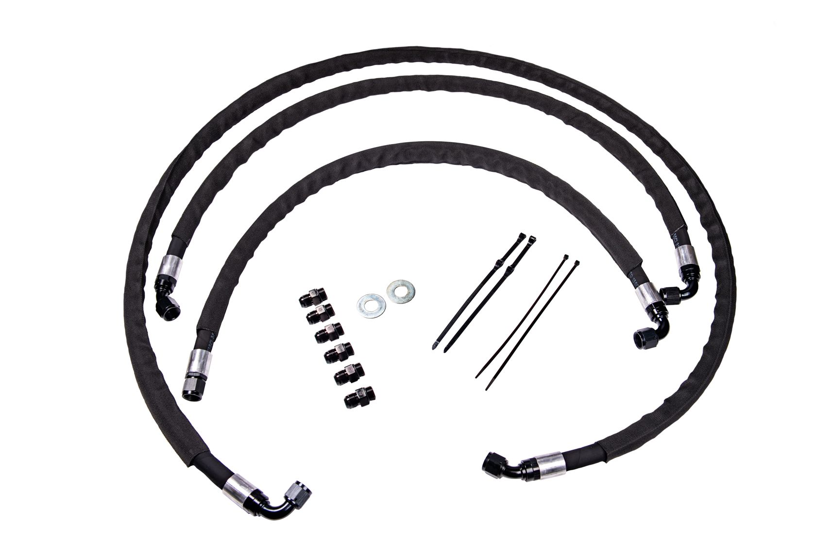 Replace your leaking transmission lines with our heavy duty, high flow, flexible transmission lines. Our kit is the most complete replacement transmission line kit available for your L5P truck! With an increased diameter over stock and heavy duty hose wrap, these lines will increase overall flow and protect against future failures.